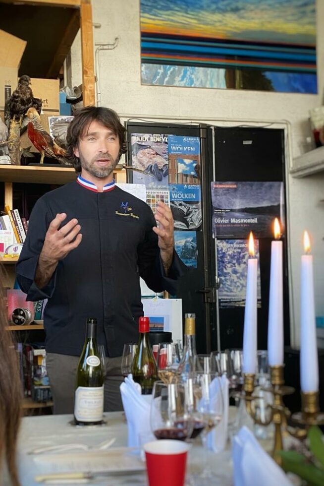 Orchestré par le sommelier Dominique Laporte MOF et meilleur sommelier de France 2004, ce déjeuner a célébré l’Apéritivore, le BBQ Master avec la cheffe Emeline Aubry, le Traditionista avec la cheffe Amandine Chaignot et enfin le Bec Sucré avec la cheffe Nina Métayer et ce, dans un lieu mêlant art et épicurisme : la Table de l’Atelier de l’artiste-peintre Olivier Masmonteil.